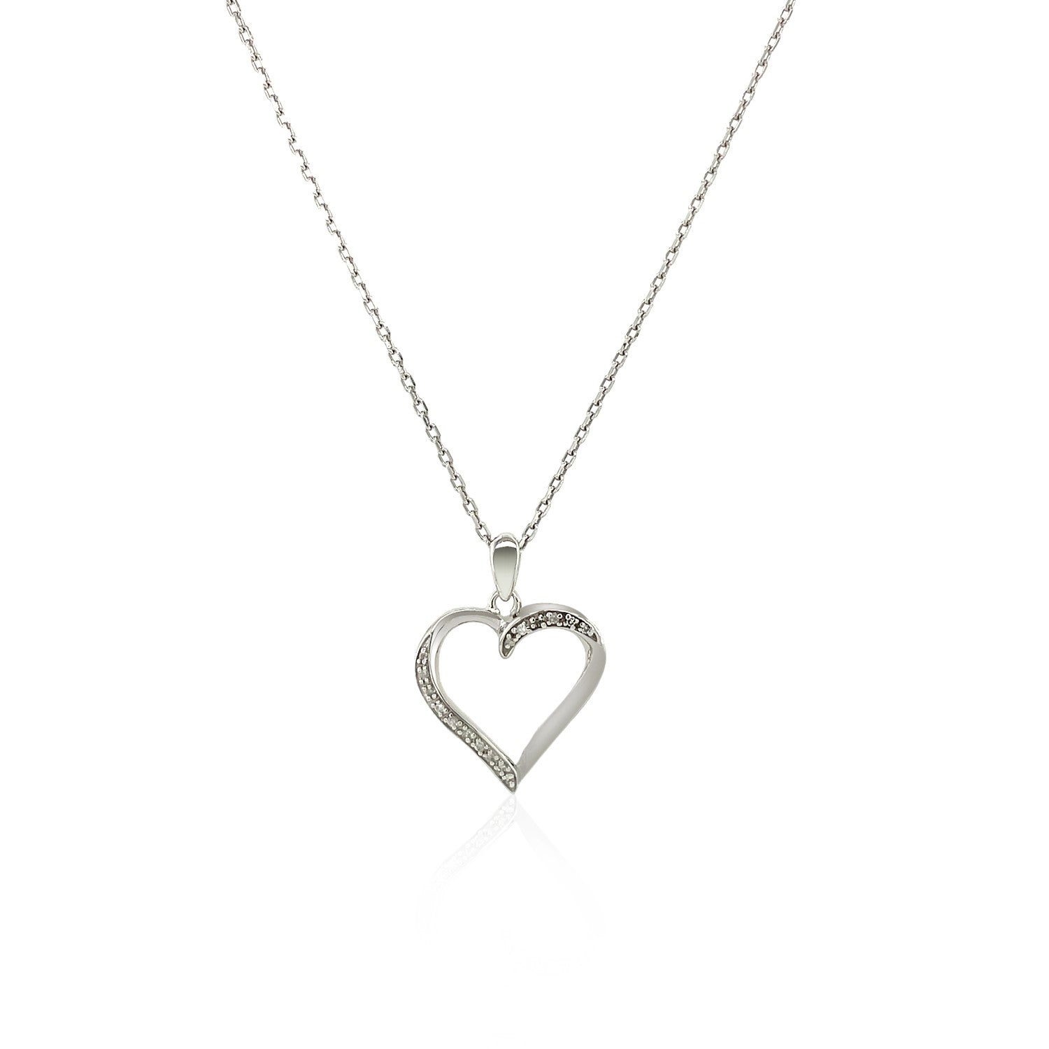 Sterling Silver Twisted Open Heart Diamond Accented Pendant (.04 cttw)
