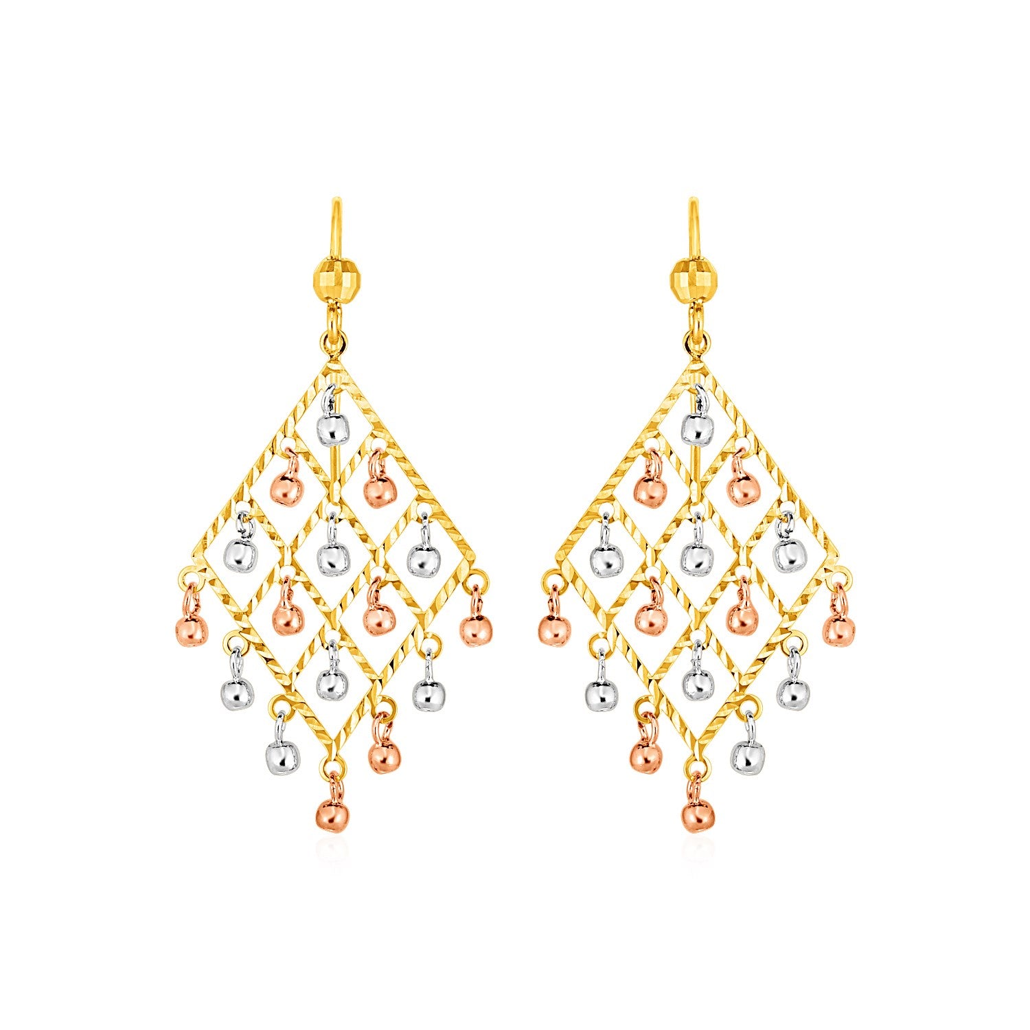 Textured Chandelier Earrings with Ball Drops in 14k Tri Color Gold